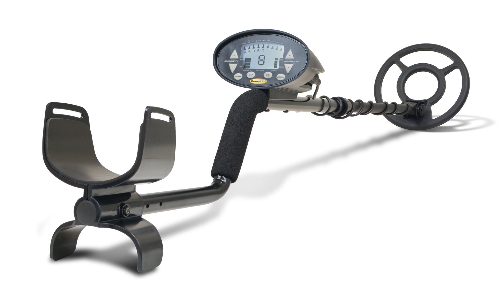 With an ergonomic S-rod handle, padded armrest, and adjustable shaft, the Discovery 2200 is built for all-day use. The weather-resistant design and waterproof 8” open-face search coil make it suitable for a variety of terrain types. Powered by two 9V alkaline batteries, the unit offers extended run time, while the easy plug-and-play interface ensures quick startup for every outing.