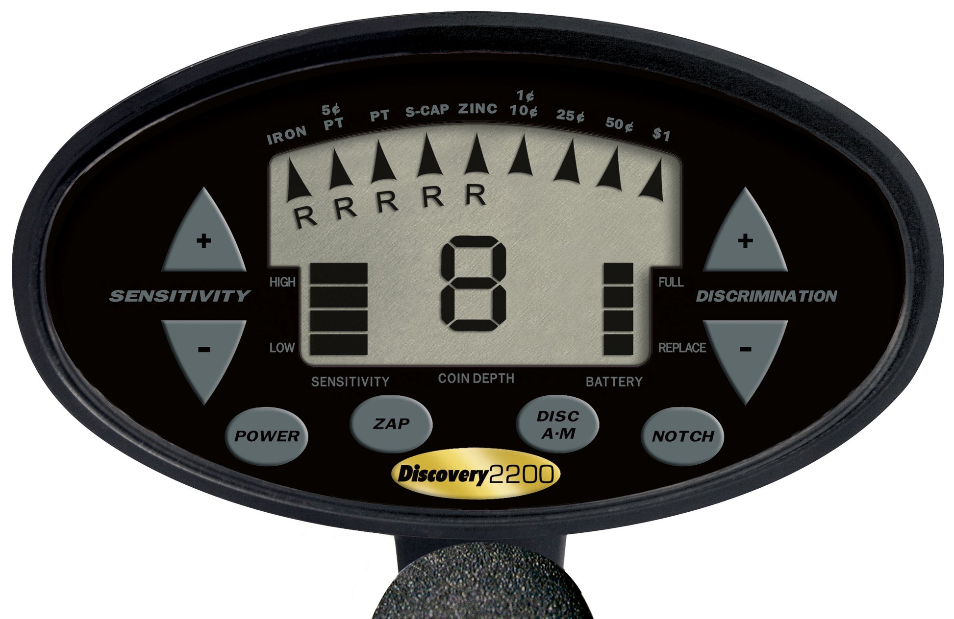 Operating at 6.7 kHz, the Discovery 2200 delivers reliable performance in real-world conditions, detecting coin-sized targets up to 7 inches deep. Its large LCD display shows probable target ID and depth, helping users quickly decide when to dig. Features like notch discrimination, sensitivity adjustment, and a pinpoint mode enable users to identify targets accurately and ignore trash. The detector uses proprietary Squelch-Tech® circuitry to minimize false signals in challenging ground conditions, and it supports both all-metal and discrimination modes for flexible hunting.